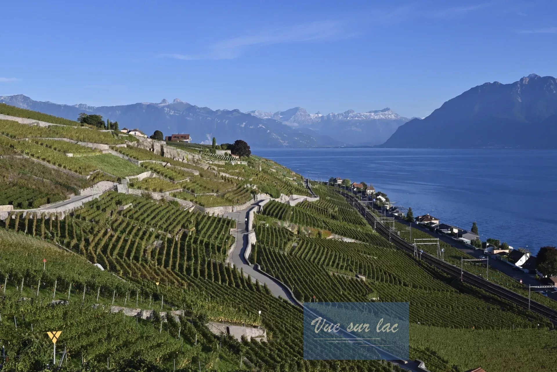Vue panoramique sur le lac, à 300m du bus, 900m de la gare, de l'entrée d'autoroute et des écoles. Une boulangerie, épicerie et Migros ouverte 7/7j , sont à proximité également.